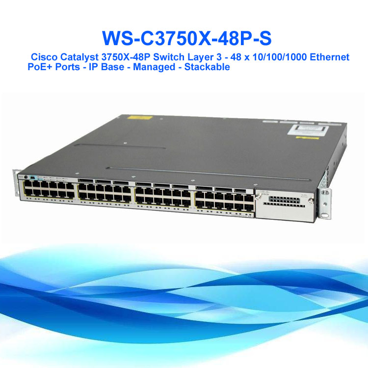 WS-C3750X-48P-S: Cisco Catalyst 3750X-48P Switch Layer 3 - 48 x 10/100/1000 Ethernet PoE+ Ports - IP Base - Managed - Stackable